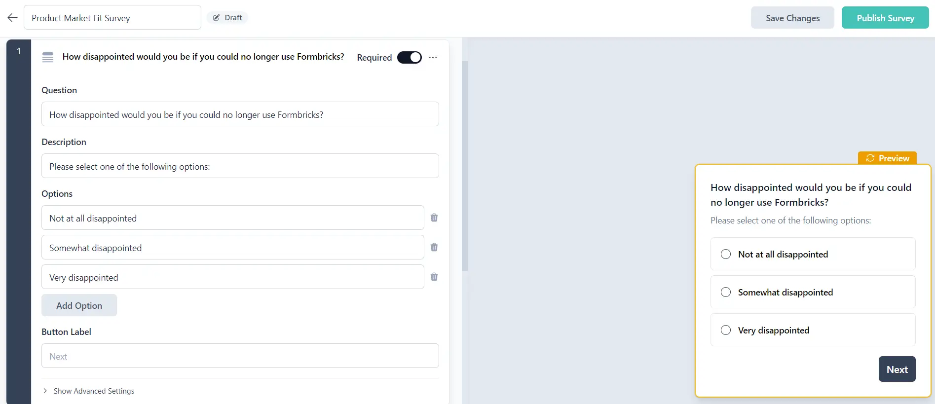 - Create new Product-Market Fit survey at app.feedbackflowhq.com