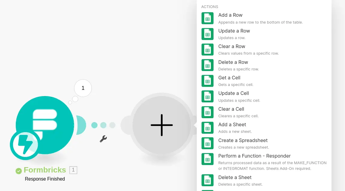 Decide on the desired action for the data. Here, we'll send submissions to a Google Sheet: